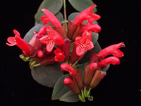 (formerly listed here as hildebrandii) Dwarf, velvety green leaves are crowned with cluster of fiery scarlet tubular flowers that are everblooming. An ever-popular variety that should be in your collection.