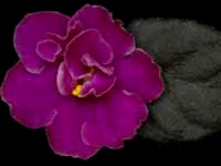 Single to semidouble deep purple (near black) with thin, white, slightly ruffled edge, slightly quilted foliage. The thin white edge is variable, so may not appear on all plants.